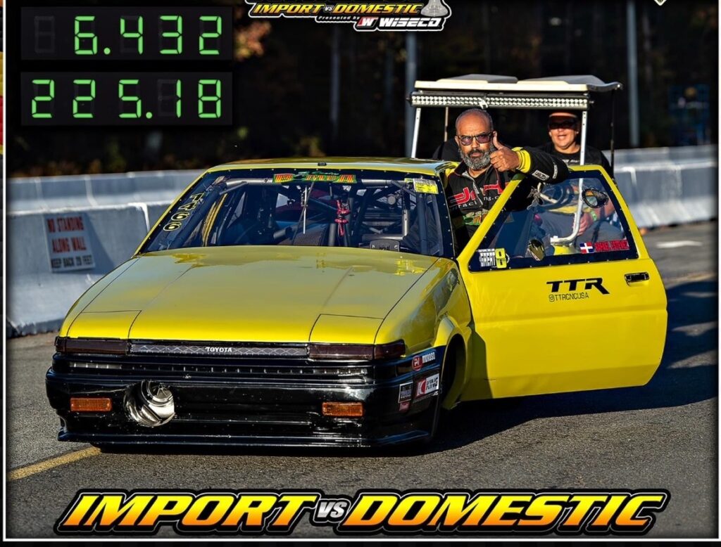 [South Amboy, NJ feb.5 2025] — DRT Racing’s standout drag racing machine, “El Coche Bomba,” delivered a breakout performance this weekend, clocking a new personal best of 6.43 seconds at 225 miles per hour in the quarter mile. The achievement marks a major milestone for the team and highlights the continued progress of the program at the highest level of competition.